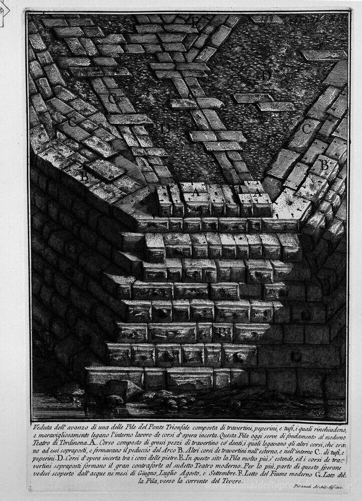 Wir bieten Ihnen eine handgefertigte Reproduktion auf Leinwand des berühmten Kunstwerks 'Die römische Altertümer, t. 4, Tafel XIV. Ansicht der Brücke St.' von Giovanni Battista Piranesi, aus dem Reproduktionsmuseum.