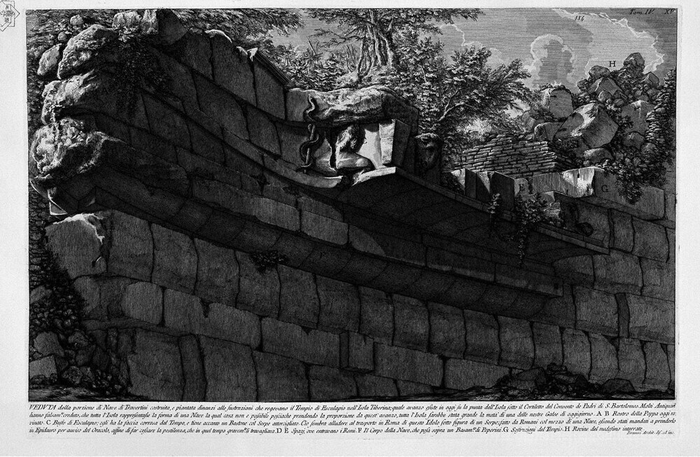 Wir bieten Ihnen eine handgefertigte Reproduktion auf Leinwand des berühmten Kunstwerks 'Die römische Altertümer, t. 4, Tafel XV. Karte von der Tiberinse' von Giovanni Battista Piranesi, aus dem Reproduktionsmuseum.
