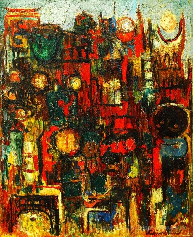 Wir bieten Ihnen eine handgefertigte Reproduktion auf Leinwand des berühmten Kunstwerks 'Die Stadt' von George Stefanescu-Ramnic , aus dem Reproduktionsmuseum.