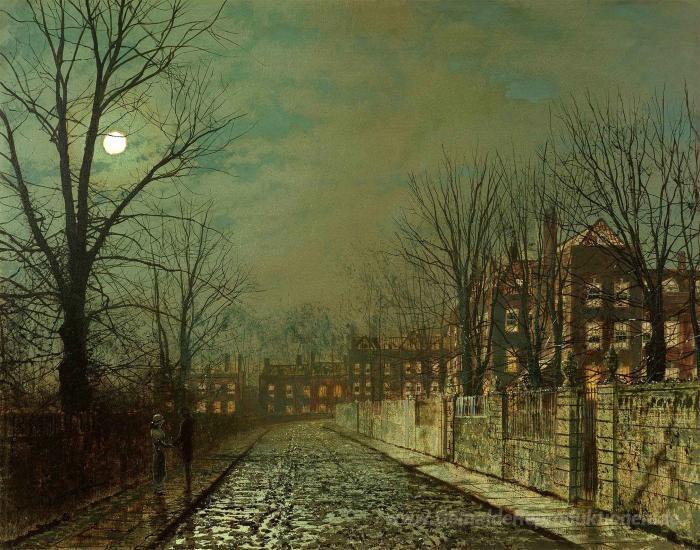 Willkommen in der faszinierenden Welt der Ölgemälde, wo Kunst und Emotion aufeinandertreffen. Unser Highlight, Die Trysting Baum von John Atkinson Grimshaw, lädt Sie ein, in eine traumhafte Kulisse einzutauchen. Grimshaw, bekannt für seine atemberaubenden Landschaftsdarstellungen und nächtlichen Szenen, setzt in diesem Werk eindrucksvoll Licht und Schatten ein, um eine melancholische, zugleich romantische Atmosphäre zu schaffen.