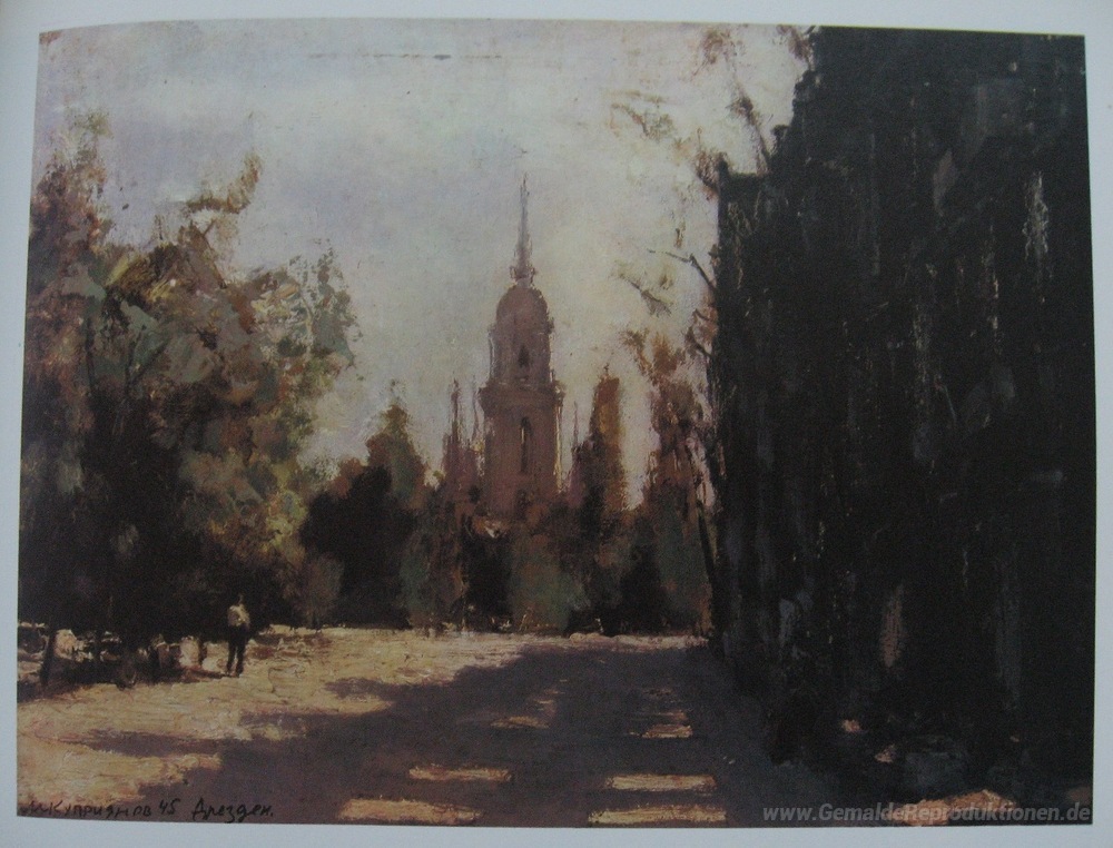 Wir bieten Ihnen eine handgefertigte Reproduktion auf Leinwand des berühmten Kunstwerks 'Dresden' von Kukryniksy, aus dem Reproduktionsmuseum.