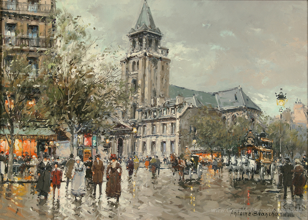 Wir bieten Ihnen eine handgefertigte Reproduktion auf Leinwand des berühmten Kunstwerks 'Eglise de Saint Germain des Prés' von Antoine Blanchard, aus dem Reproduktionsmuseum.