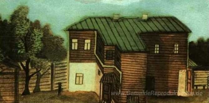 Wir bieten Ihnen eine handgefertigte Reproduktion auf Leinwand des berühmten Kunstwerks 'Ein kleines Haus in Moskau' von Pavel Filonov, aus dem Reproduktionsmuseum.