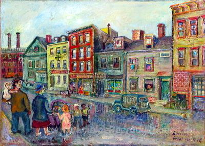 Wir bieten Ihnen eine handgefertigte Reproduktion auf Leinwand des berühmten Kunstwerks 'Eine Straßenszene' von David Burliuk, aus dem Reproduktionsmuseum.