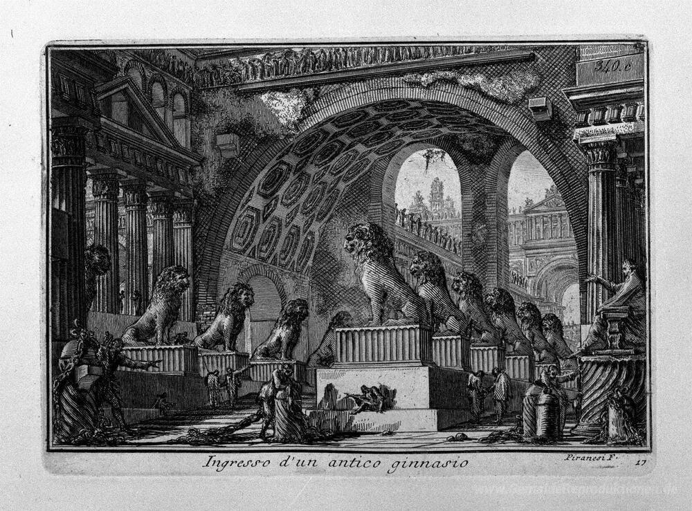 Wir bieten Ihnen eine handgefertigte Reproduktion auf Leinwand des berühmten Kunstwerks 'Eingang eines alten High School' von Giovanni Battista Piranesi, aus dem Reproduktionsmuseum.