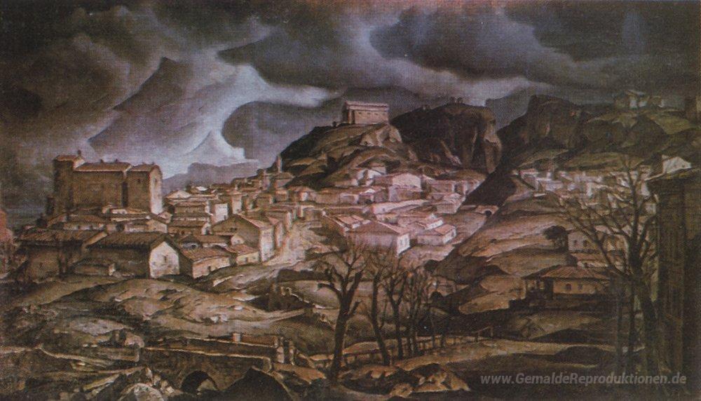 Wir bieten Ihnen eine handgefertigte Reproduktion auf Leinwand des berühmten Kunstwerks 'Feodosia' von Konstantin Bogaevsky, aus dem Reproduktionsmuseum.