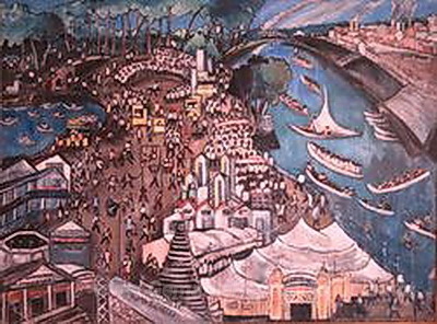 Wir bieten Ihnen eine handgefertigte Reproduktion auf Leinwand des berühmten Kunstwerks 'Feste in Gorky Park in Moskau' von David Burliuk, aus dem Reproduktionsmuseum.