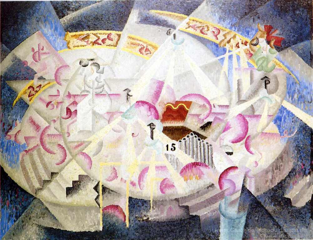 Willkommen in der faszinierenden Welt der Ölgemälde, in der jeder Pinselstrich Geschichten erzählt und Emotionen weckt. Unser Highlight ist das bemerkenswerte Werk Festival in Montmartre des gefeierten Künstlers Gino Severini, der als einer der zentralen Vertreter des Futurismus gilt. Severinis einzigartiger Stil vereint Dynamik und Farbe, wodurch das Gemälde lebendige Szenen aus dem pulsierenden Paris des frühen 20. Jahrhunderts einfängt.