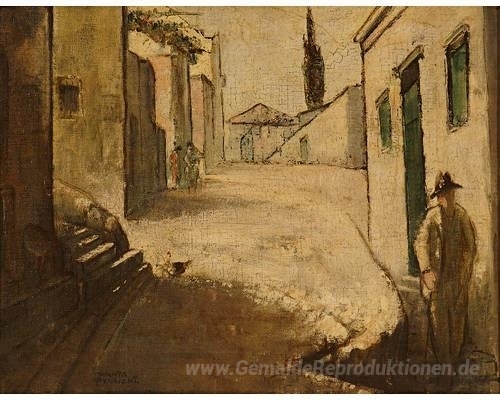 Willkommen in unserer exquisiten Sammlung von Ölgemälden! Jedes Kunstwerk erzählt eine einzigartige Geschichte und spiegelt das Talent und die Vision des Künstlers wider. Ein herausragendes Beispiel ist das Werk Figuren auf einer Straße des renommierten Künstlers Theophrastos Triantafyllidis, das den Betrachter in eine lebendige Szenerie voller Emotion und Bewegung entführt. Triantafyllidis' charakteristischer Stil vereint Realismus mit impressionistischen Akzenten und schafft so eine harmonische Komposition.