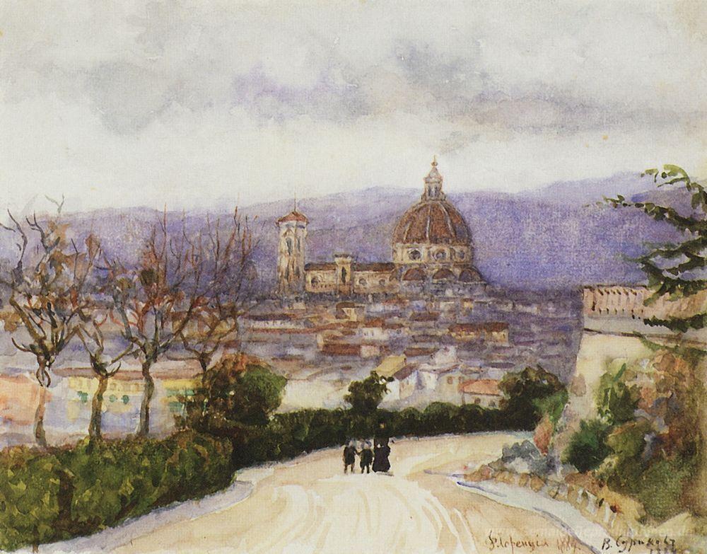 Wir bieten Ihnen eine handgefertigte Reproduktion auf Leinwand des berühmten Kunstwerks 'Florence. Spaziergang.' von Vasily Surikov, aus dem Reproduktionsmuseum.