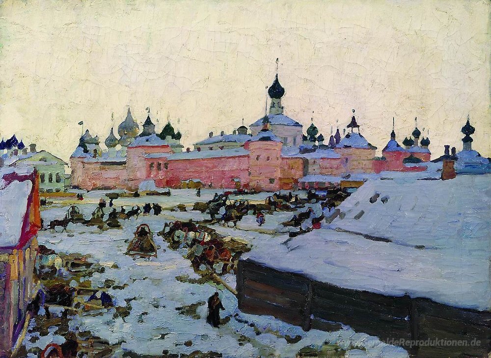 Wir bieten Ihnen eine handgefertigte Reproduktion auf Leinwand des berühmten Kunstwerks 'Frühlingsabend. Rostov das große' von Konstantin Yuon, aus dem Reproduktionsmuseum.