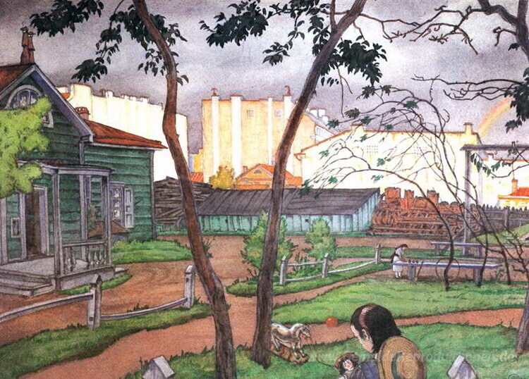 Wir bieten Ihnen eine handgefertigte Reproduktion auf Leinwand des berühmten Kunstwerks 'Garten' von Mstislav Dobuzhinsky, aus dem Reproduktionsmuseum.