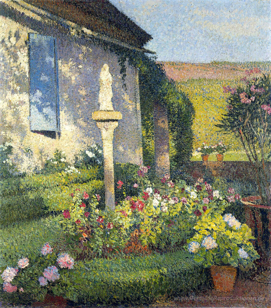 Wir bieten Ihnen eine handgefertigte Reproduktion auf Leinwand des berühmten Kunstwerks 'Garten von Labastide du in Ver Marquayrol' von Henri Martin, aus dem Reproduktionsmuseum.