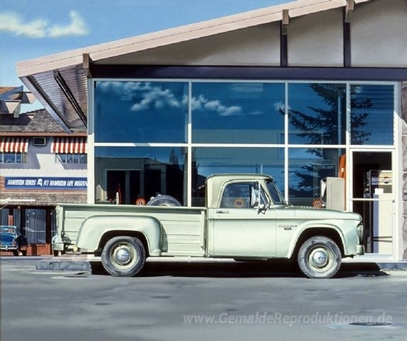 Wir bieten Ihnen eine handgefertigte Reproduktion auf Leinwand des berühmten Kunstwerks 'Goldene Ausweichen' von Ralph Goings, aus dem Reproduktionsmuseum.