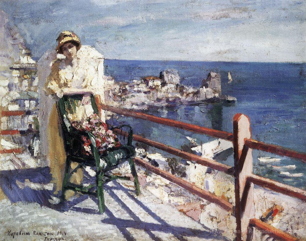 Wir bieten Ihnen eine handgefertigte Reproduktion auf Leinwand des berühmten Kunstwerks 'Gursuf' von Konstantin Korovin, aus dem Reproduktionsmuseum.