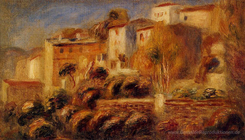Wir bieten Ihnen eine handgefertigte Reproduktion auf Leinwand des berühmten Kunstwerks 'Häuser in Cagnes' von Pierre-Auguste Renoir, aus dem Reproduktionsmuseum.