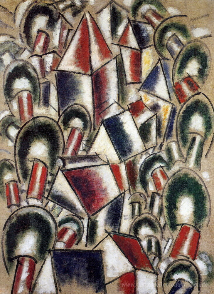 Wir bieten Ihnen eine handgefertigte Reproduktion auf Leinwand des berühmten Kunstwerks 'Häuser in der Baumlandschaft n ° 3' von Fernand Leger, aus dem Reproduktionsmuseum.