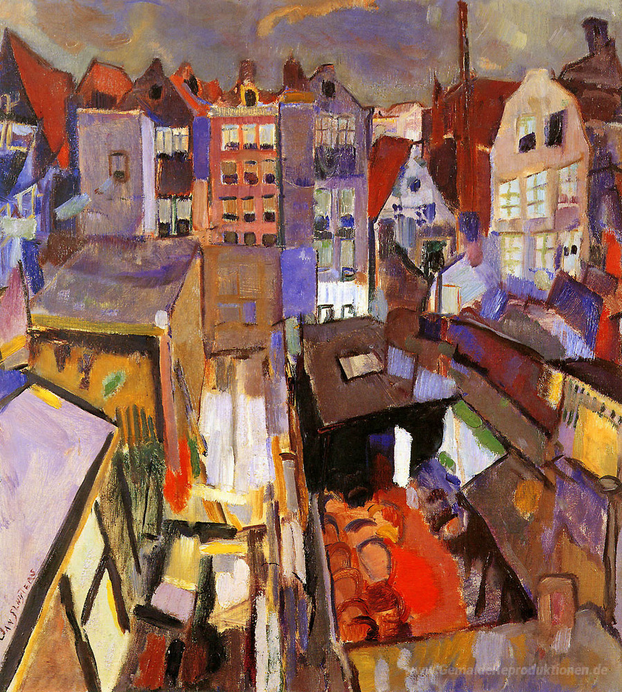 Wir bieten Ihnen eine handgefertigte Reproduktion auf Leinwand des berühmten Kunstwerks 'Häuser in der Jordaan' von Jan Sluyters, aus dem Reproduktionsmuseum.