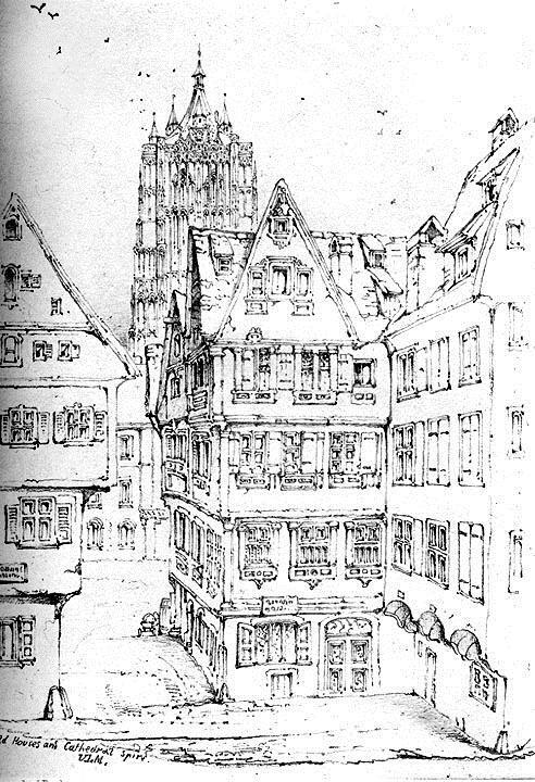 Wir bieten Ihnen eine handgefertigte Reproduktion auf Leinwand des berühmten Kunstwerks 'Häuser und Kathedrale Spire Ulm' von John Ruskin, aus dem Reproduktionsmuseum.