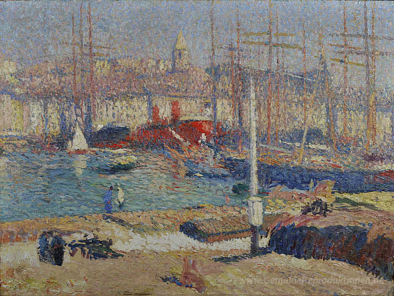 Wir bieten Ihnen eine handgefertigte Reproduktion auf Leinwand des berühmten Kunstwerks 'Hafen von Marseille' von Henri Martin, aus dem Reproduktionsmuseum.