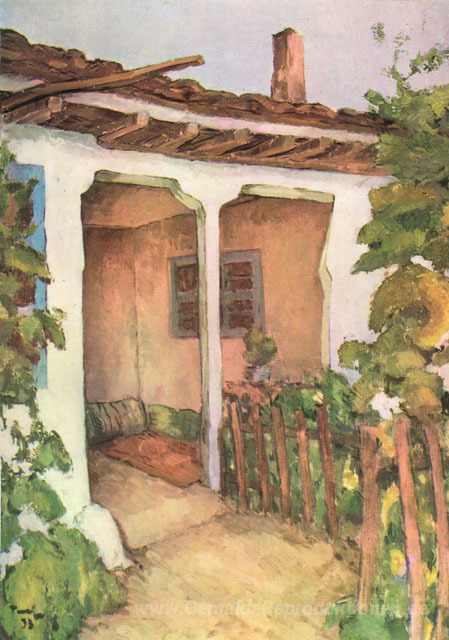 Wir bieten Ihnen eine handgefertigte Reproduktion auf Leinwand des berühmten Kunstwerks 'Haus in Dobrudja' von Nicolae Tonitza, aus dem Reproduktionsmuseum.