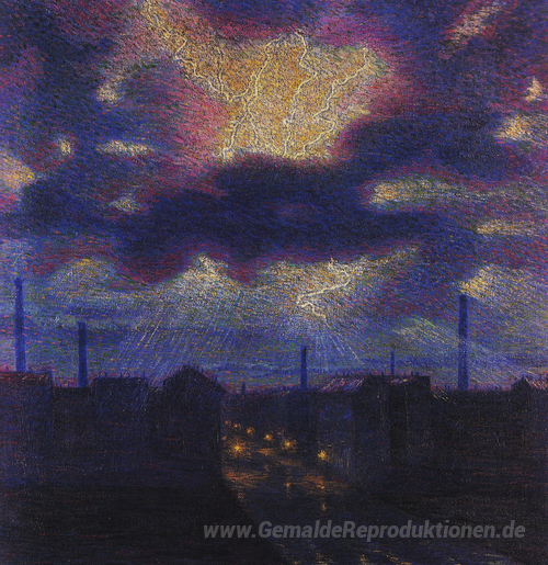 Wir bieten Ihnen eine handgefertigte Reproduktion auf Leinwand des berühmten Kunstwerks 'Ich lampi' von Luigi Russolo, aus dem Reproduktionsmuseum.