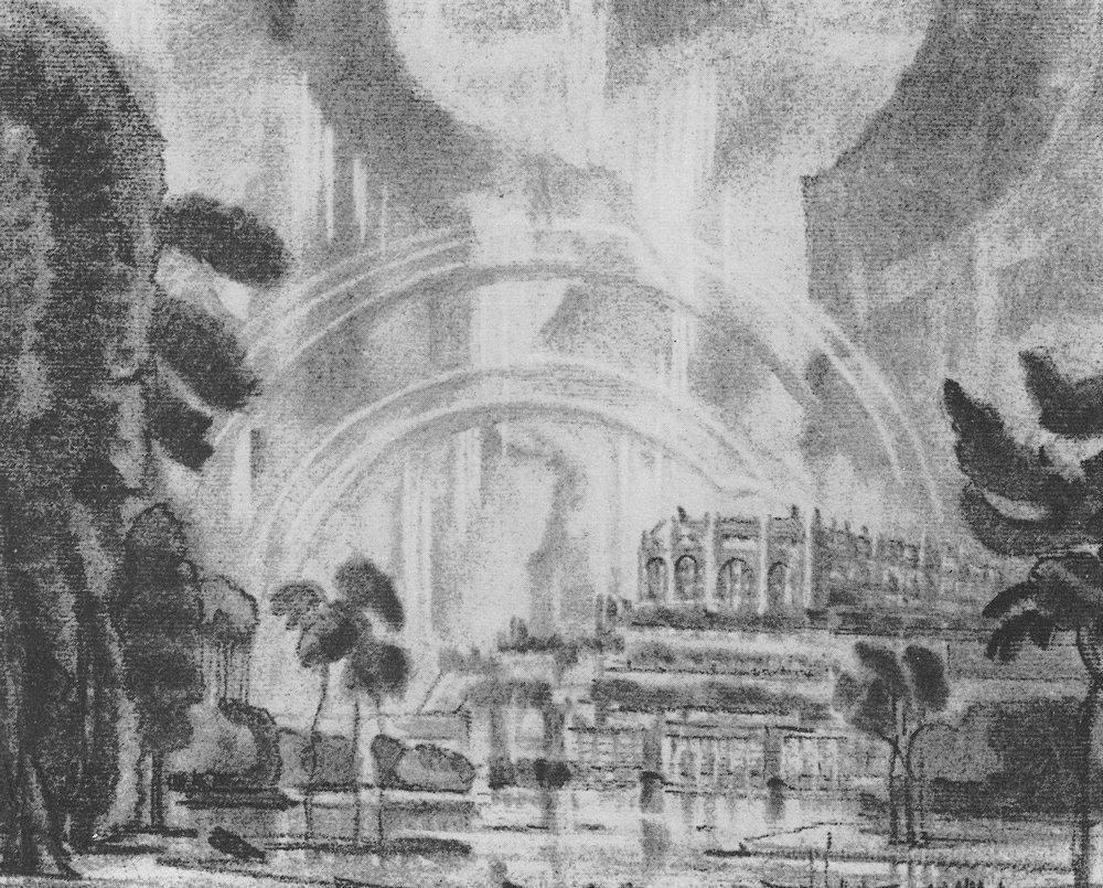 Wir bieten Ihnen eine handgefertigte Reproduktion auf Leinwand des berühmten Kunstwerks 'Imaginary Stadt. Regenbogen.' von Konstantin Bogaevsky, aus dem Reproduktionsmuseum.