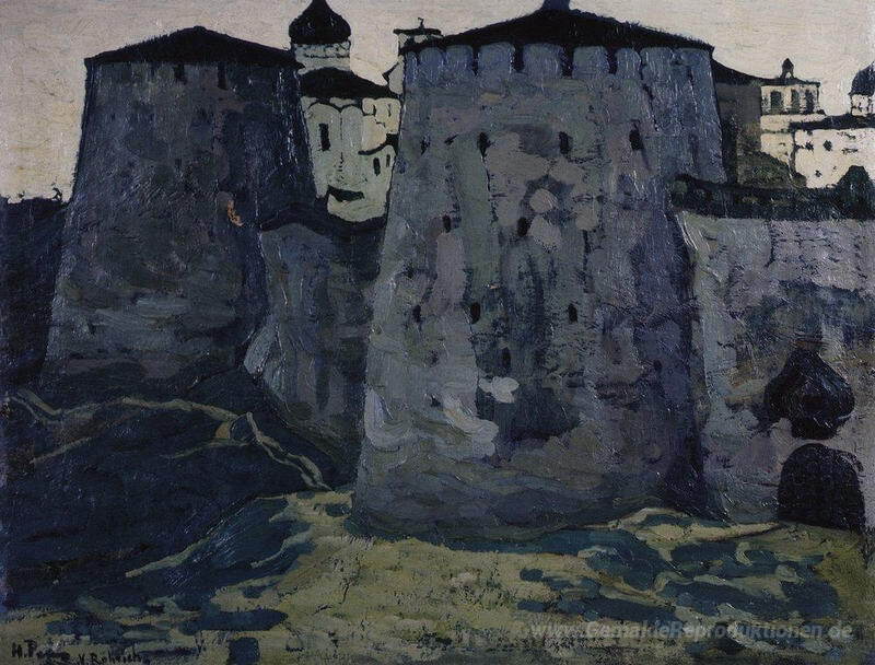 Wir bieten Ihnen eine handgefertigte Reproduktion auf Leinwand des berühmten Kunstwerks 'Izborsk. Towers.' von Nicholas Roerich, aus dem Reproduktionsmuseum.
