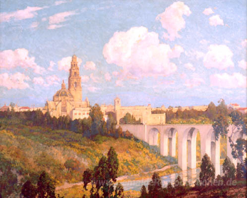 Wir bieten Ihnen eine handgefertigte Reproduktion auf Leinwand des berühmten Kunstwerks 'Kalifornien-Kontrollturm' von Maurice Braun, aus dem Reproduktionsmuseum.