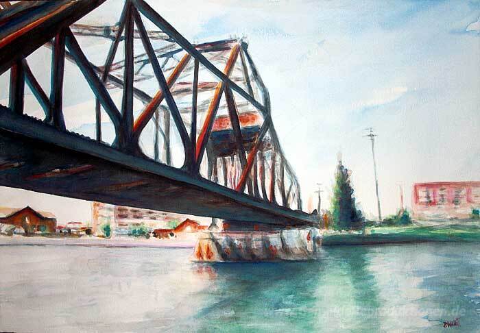 Wir bieten Ihnen eine handgefertigte Reproduktion auf Leinwand des berühmten Kunstwerks 'Kanalbrücke' von Patrick Willett, aus dem Reproduktionsmuseum.