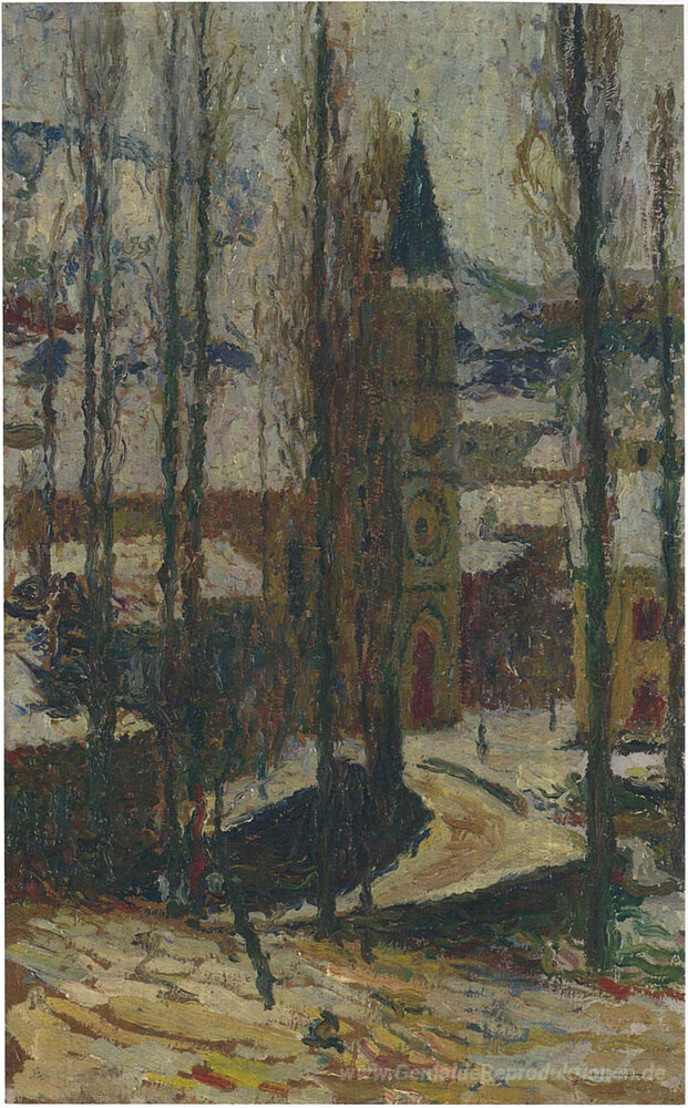 Wir bieten Ihnen eine handgefertigte Reproduktion auf Leinwand des berühmten Kunstwerks 'Kirche im Winter' von Henri Martin, aus dem Reproduktionsmuseum.