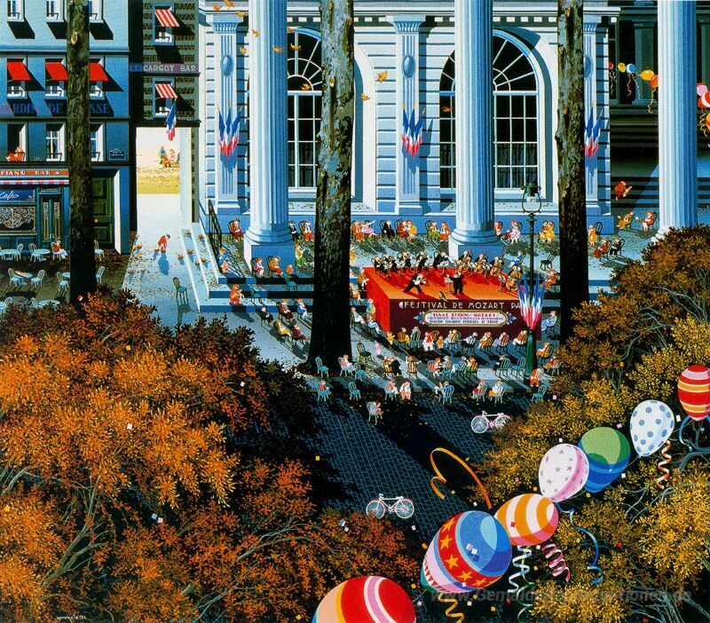 Wir bieten Ihnen eine handgefertigte Reproduktion auf Leinwand des berühmten Kunstwerks 'Konzert in der Stadt' von Hiro Yamagata, aus dem Reproduktionsmuseum.