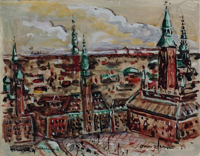 Wir bieten Ihnen eine handgefertigte Reproduktion auf Leinwand des berühmten Kunstwerks 'Kopenhagen, Dänemark' von Ivan Albright, aus dem Reproduktionsmuseum.