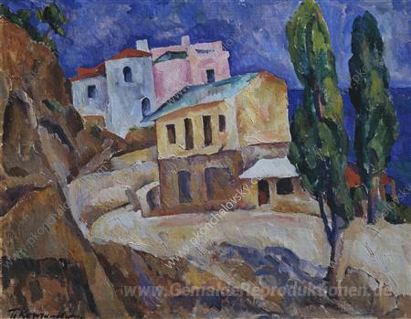 Wir bieten Ihnen eine handgefertigte Reproduktion auf Leinwand des berühmten Kunstwerks 'Krim. Alupka.' von Pyotr Konchalovsky, aus dem Reproduktionsmuseum.