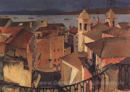 Wir bieten Ihnen eine handgefertigte Reproduktion auf Leinwand des berühmten Kunstwerks 'Lisboa e o Tejo, Domingo' von Carlos Botelho, aus dem Reproduktionsmuseum.