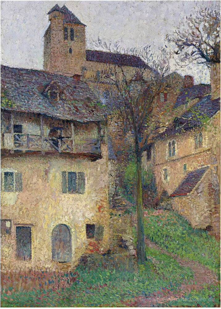 Wir bieten Ihnen eine handgefertigte Reproduktion auf Leinwand des berühmten Kunstwerks 'Menge Verg Die Kirche von Saint Cirq Lapopie' von Henri Martin, aus dem Reproduktionsmuseum.