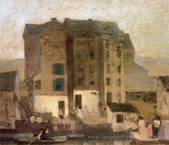 Wir bieten Ihnen eine handgefertigte Reproduktion auf Leinwand des berühmten Kunstwerks 'Misty Abend' von Robert Spencer, aus dem Reproduktionsmuseum.