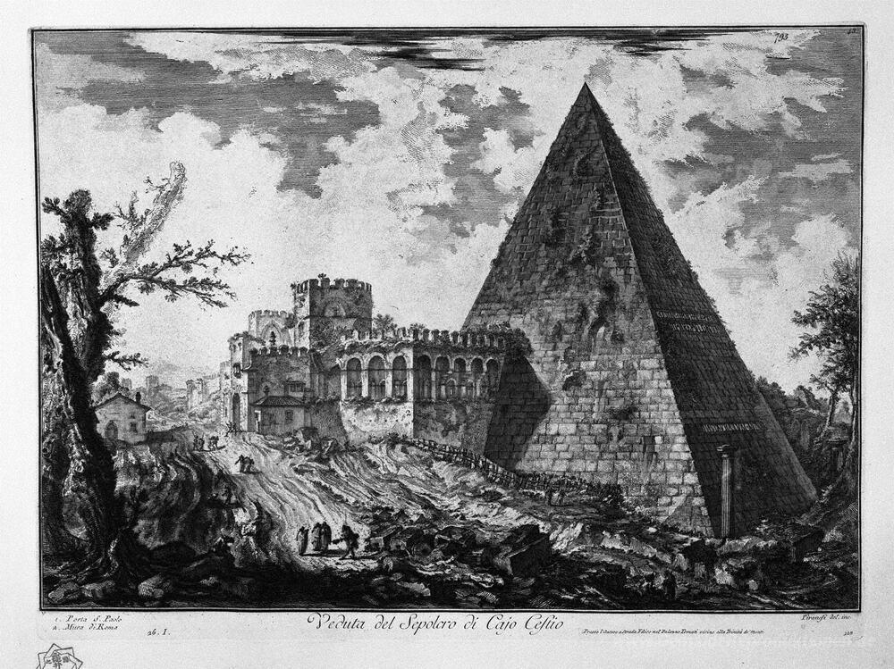 Wir bieten Ihnen eine handgefertigte Reproduktion auf Leinwand des berühmten Kunstwerks 'Mit Blick auf das Grab der Cestius-' von Giovanni Battista Piranesi, aus dem Reproduktionsmuseum.