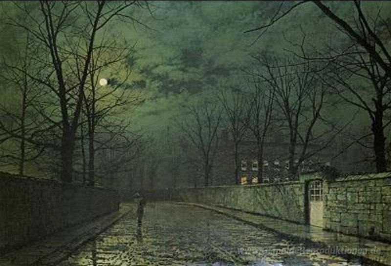 Willkommen in der faszinierenden Welt der Ölgemälde, wo Kunst und Emotion in einem harmonischen Zusammenspiel verschmelzen. Unser Highlight, das beeindruckende Gemälde Moonlight Nach Regen, stammt von dem renommierten Künstler John Atkinson Grimshaw. Grimshaw, bekannt für seine meisterhafte Beherrschung von Licht und Schatten, erschafft mit jedem Pinselstrich atmosphärische Landschaften, die die Seele berühren und den Betrachter in eine andere Zeit versetzen.