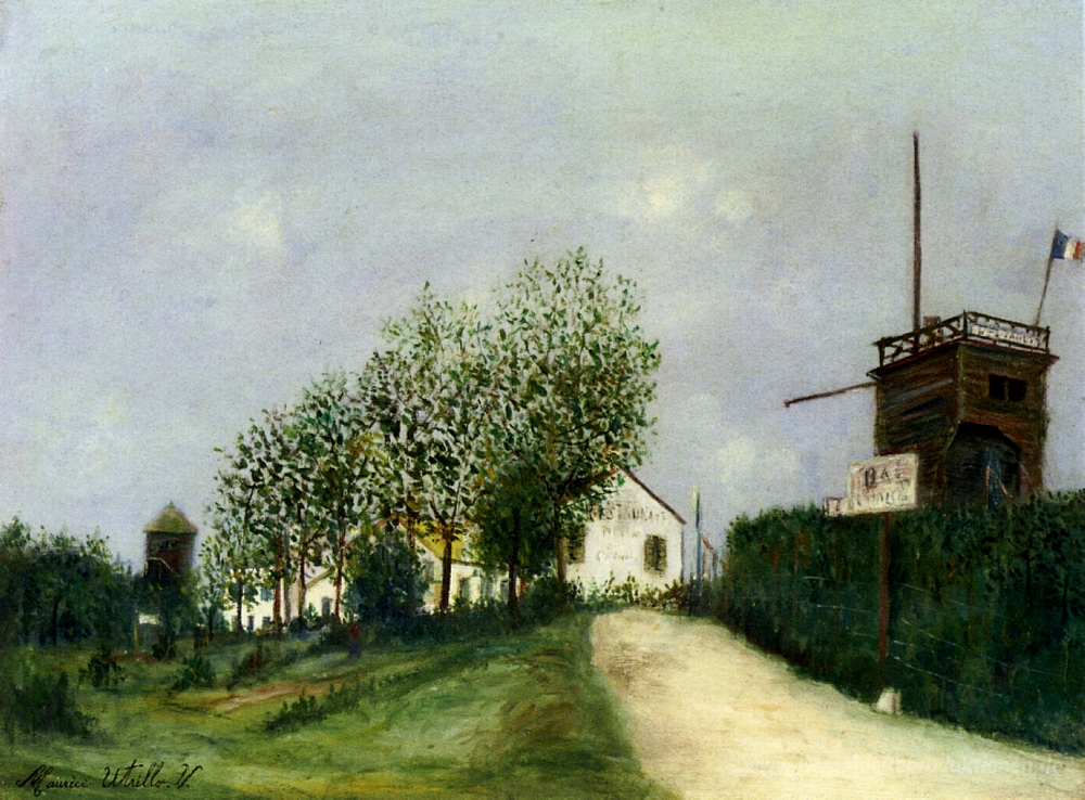 Wir bieten Ihnen eine handgefertigte Reproduktion auf Leinwand des berühmten Kunstwerks 'Moulin in Sannois' von Maurice Utrillo, aus dem Reproduktionsmuseum.