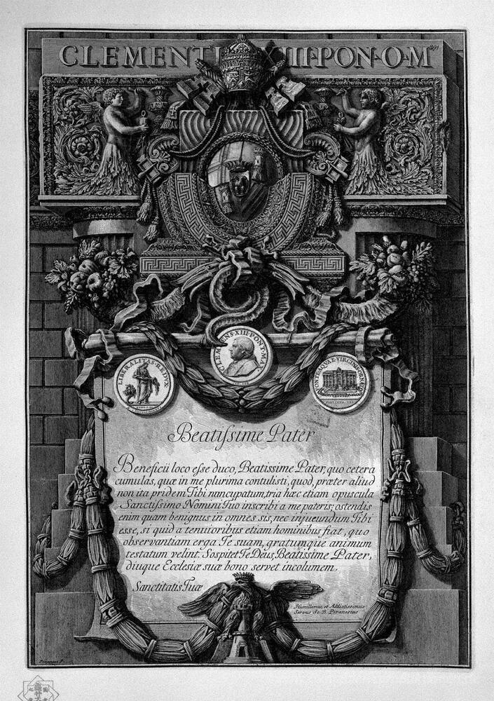 Wir bieten Ihnen eine handgefertigte Reproduktion auf Leinwand des berühmten Kunstwerks 'Nach zu vertuschen, die Papstwappen, unter einem großen Kartusch' von Giovanni Battista Piranesi, aus dem Reproduktionsmuseum.