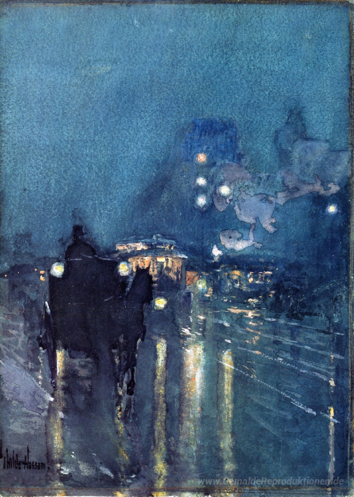 Wir bieten Ihnen eine handgefertigte Reproduktion auf Leinwand des berühmten Kunstwerks 'Nocturne, Bahnübergang, Chicago' von Childe Hassam, aus dem Reproduktionsmuseum.