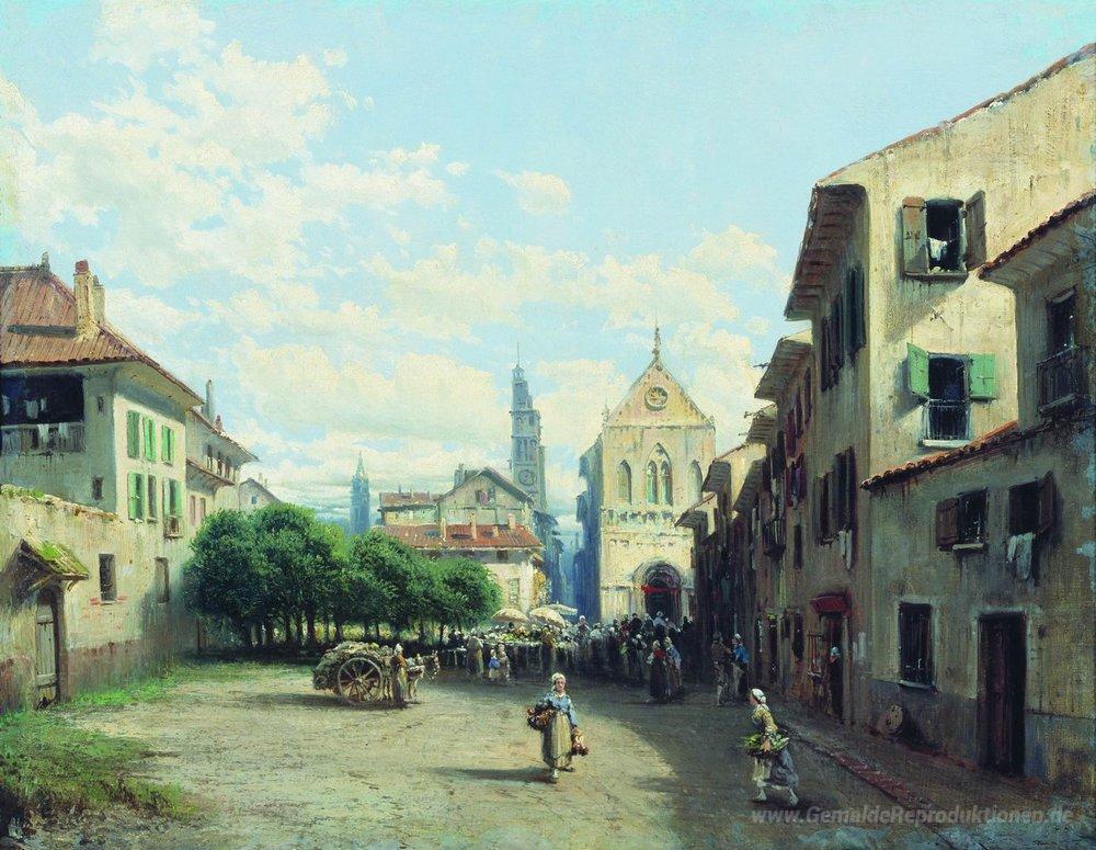 Wir bieten Ihnen eine handgefertigte Reproduktion auf Leinwand des berühmten Kunstwerks 'Norman Stadt' von Alexey Bogolyubov, aus dem Reproduktionsmuseum.