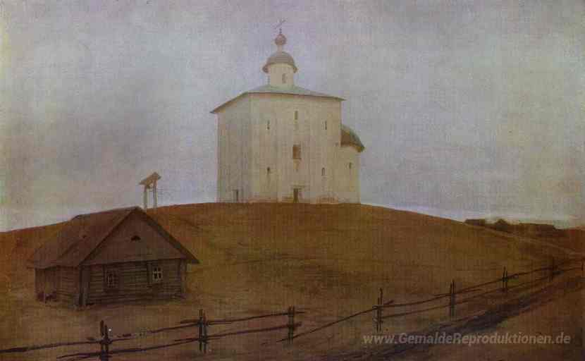 Wir bieten Ihnen eine handgefertigte Reproduktion auf Leinwand des berühmten Kunstwerks 'Novgorod Kirche' von Andrei Ryabushkin, aus dem Reproduktionsmuseum.