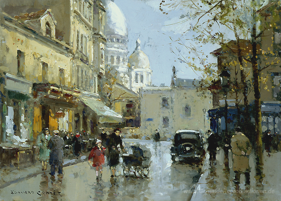 Wir bieten Ihnen eine handgefertigte Reproduktion auf Leinwand des berühmten Kunstwerks 'Ort, von einem Hügel Montmartre' von Edouard Cortes, aus dem Reproduktionsmuseum.