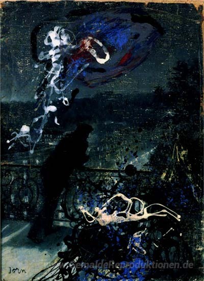 Wir bieten Ihnen eine handgefertigte Reproduktion auf Leinwand des berühmten Kunstwerks 'Paris bei Nacht (Defiguration)' von Asger Jorn, aus dem Reproduktionsmuseum.
