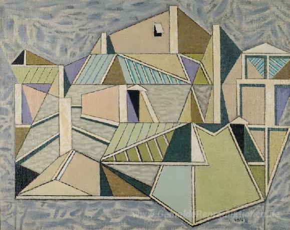 Wir bieten Ihnen eine handgefertigte Reproduktion auf Leinwand des berühmten Kunstwerks 'Paris Roofs II' von Nikos Hadjikyriakos-Ghikas, aus dem Reproduktionsmuseum.