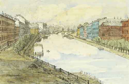 Wir bieten Ihnen eine handgefertigte Reproduktion auf Leinwand des berühmten Kunstwerks 'Petersburg. Fontanka.' von Anna Ostroumova-Lebedeva, aus dem Reproduktionsmuseum.