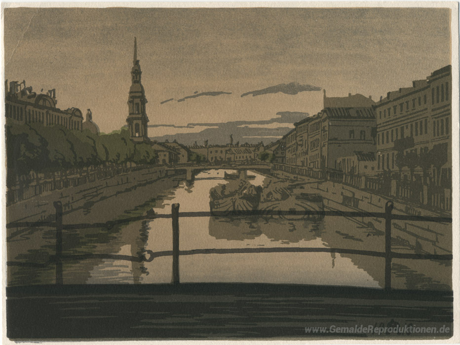 Wir bieten Ihnen eine handgefertigte Reproduktion auf Leinwand des berühmten Kunstwerks 'Petersburg. Kryukov Canal.' von Anna Ostroumova-Lebedeva, aus dem Reproduktionsmuseum.