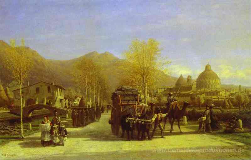 Wir bieten Ihnen eine handgefertigte Reproduktion auf Leinwand des berühmten Kunstwerks 'Pisa. Mit Blick auf das Baptisterium und der Dom' von Alexey Bogolyubov, aus dem Reproduktionsmuseum.